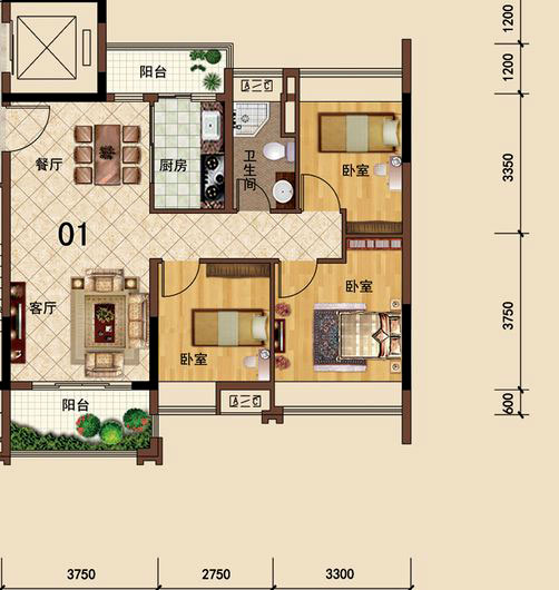 • 依云天匯B01戶型 3室面積155.00平米