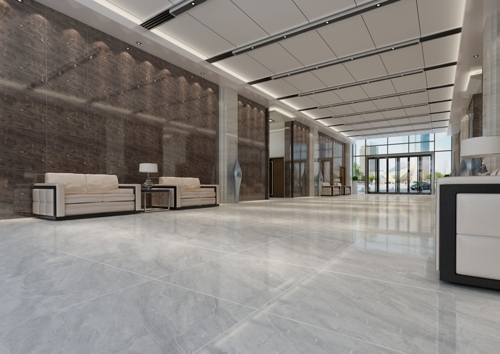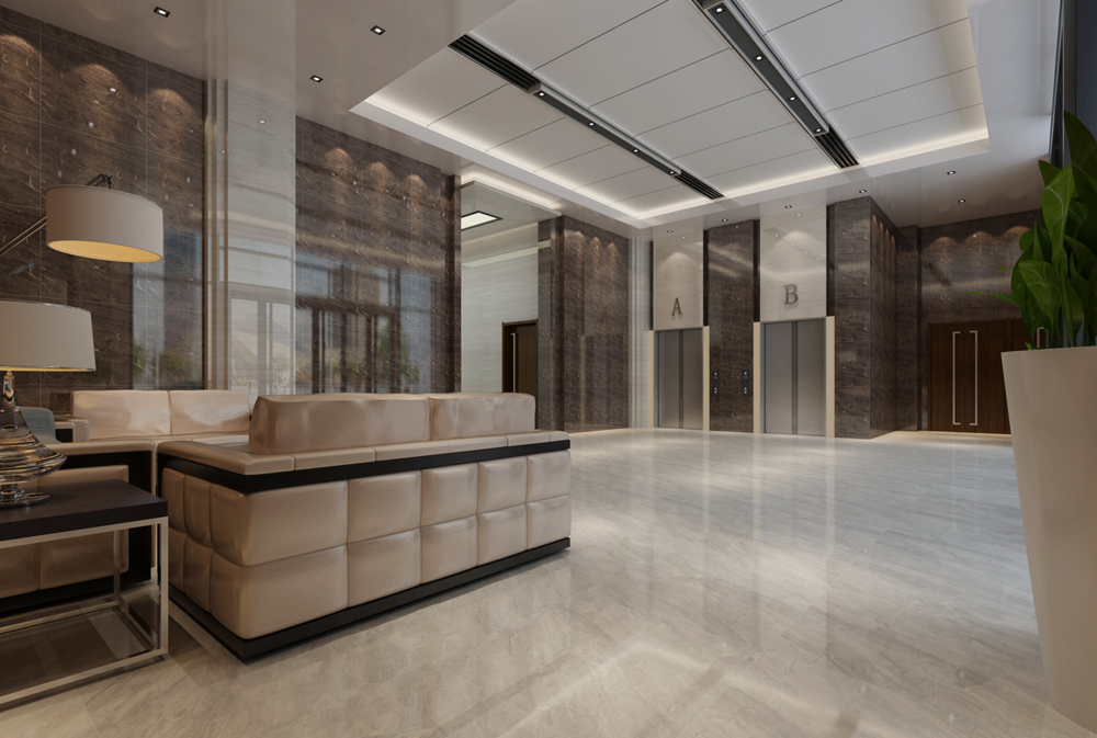 酒店休息區(qū)(KTA8301/KTB8110),同樣以通體大理石KTA8301/KTB8110鋪貼,一深一淺的搭配正好區(qū)分墻面和地面,但它們的紋理大致一樣,又很好地營造空間的和諧統(tǒng)一。沙發(fā)選用與地面接近的顏色,線條簡潔大氣,在休息區(qū)沒有流動(dòng)的線條,設(shè)計(jì)師用意是想營造休息區(qū)的安靜氛圍。